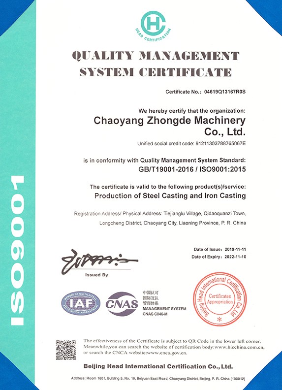 朝陽中德機械有限公司座落于有著“東方佛都”之稱的三燕古都,歷史文化名城——朝陽,具體位置朝陽市龍城區(qū)七道泉子鎮(zhèn)鐵匠爐村。公司創(chuàng)建于2006年5月是一家以鑄鋼件、鑄鐵件,集按用途設計、開發(fā)、生產、銷售于一體的,為機械設備配套的生產型公司。公司注冊資金1000萬,固定資產投資1480萬元,主要生產設備GGW-5T,GGW-10T,GGW-10T中頻感應爐;GDY-13C高溫電阻窯、GDY-9.5C電阻窯,M4000型直讀光譜儀,DP-3985型硬度測試儀,倒置式金相顯微鏡、拉伸試驗機、超生波探傷儀,檢測手段完備。
